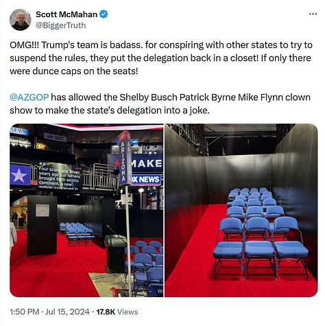 The Post’s reporting confirmed everything I had been publishing for weeks. The story described how Arizona delegates had gathered for what was supposed to be a get-to-know-you meeting but were instead presented with a plan to throw Trump’s nomination into chaos. It confirmed the plan came not from “Never Trumpers” but from self-described “America First” believers on the far right.