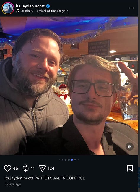 Twillman and Scott then traveled to several hot spots with Lang, where Lang did “Sieg Heils” to solute Hitler and yell antisemitic epithets in New York City. For the last several weeks, Scott has been in Minneapolis, where he yelled into a blowhorn at Democrat protesters, “We executed one of you yesterday” the day after Renee Good was killed by an ICE officer as she struck him with her vehicle, causing the officer internal bleeding.