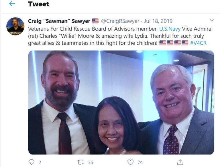 Craig “Sawman” Sawyer is a Marine veteran, former member of Navy SEAL Team SIX and sniper. He provided security detail for both Hillary Clinton and John McCain and now runs a lucrative nonprofit called Veterans 4 Child Rescue (V4CR), which employs Sawyer and now his daughter, Aspen Sawyer, who apparently is an aspiring actress.
