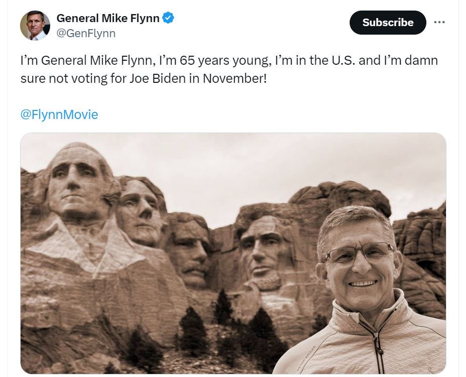 Flynn indicated his own presidential ambitions in this not-so-subtle post: