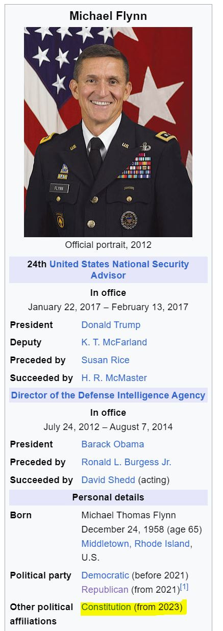 Flynn was born to Democrat parents and was a lifelong Democrat until 2021, when he joined the Republican Party as a Florida precinct delegate in support of Dan Schultz’ and Steve Bannon’s Precinct Strategy. According to Wikipedia, he now identifies with the Constitution Party instead of the Republican Party.