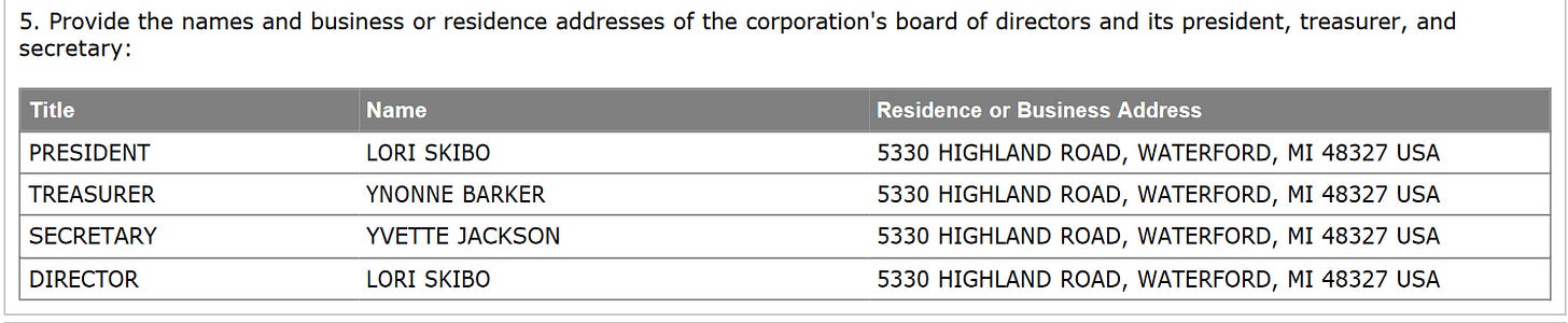 As Craig Mauger from the Detroit News reported, Karamo’s Chief of Staff, Lori Skibo, was listed as President and Director of this organization:
