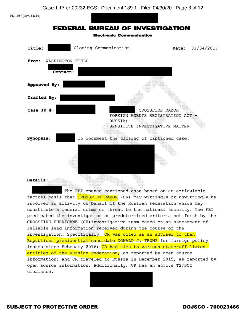 Flynn was so central to the Crossfire Hurricane investigation that the FBI gave him a codename: Crossfire Razor.