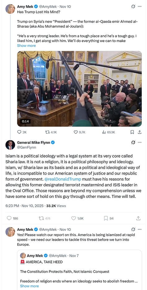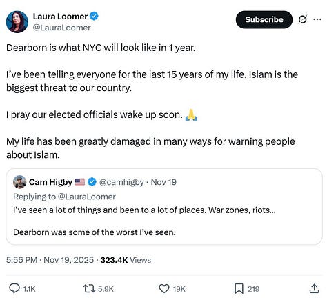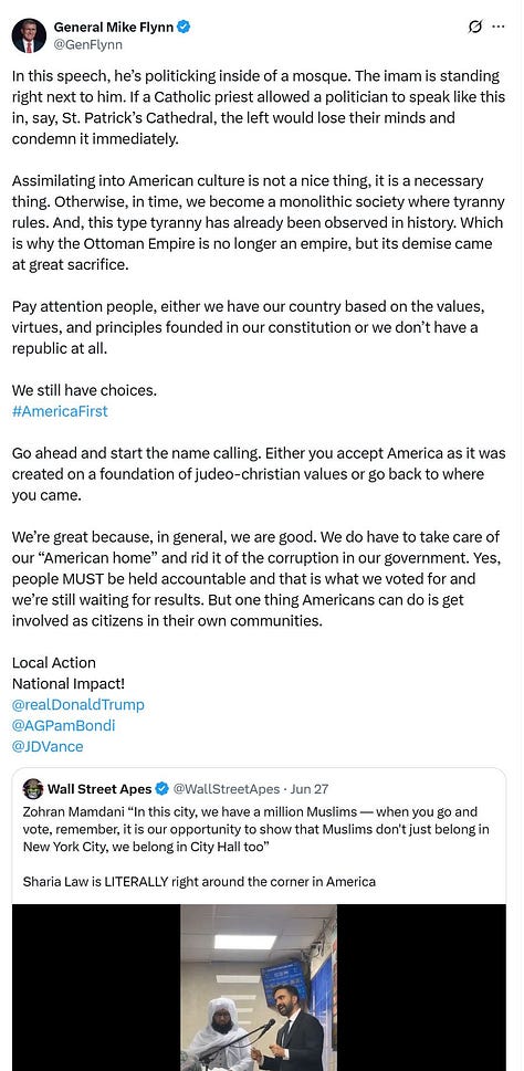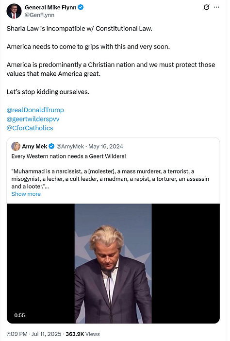 The Dearborn confrontation did not emerge in a vacuum – it was the crescendo of months of intensifying anti-Muslim propaganda aimed at portraying American Muslims as incompatible with our Constitution. Around August 2025, X accounts linked to Flynn began fixating on Dearborn (which has America’s largest Muslim-majority community and voted overwhelmingly for Trump in 2024) as a supposed hotbed of “Muslim infiltration” and creeping Sharia law.