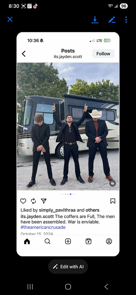 He then chanted “Jesus Christ is king” as police escorted him out. Jayden Scott screamed, red faced, into a media livestream camera, “Christ is kiiing!” Their use of this term is not in worship of Jesus Christ but as a dog whistle intended to rally a psychological response for manipulative purposes. You can watch his speech here, with some white supremacist color at the beginning.