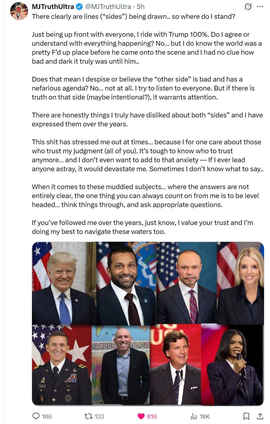 And it seems that all of X is now seeing this. The mask over Flynn has just flown off and the walls that have gatekept his cults are beginning to crumble. I’ve seen thousands of his followers abandon ship and even some of Flynn’s influencers are processing these revelations honestly and painfully. One example: