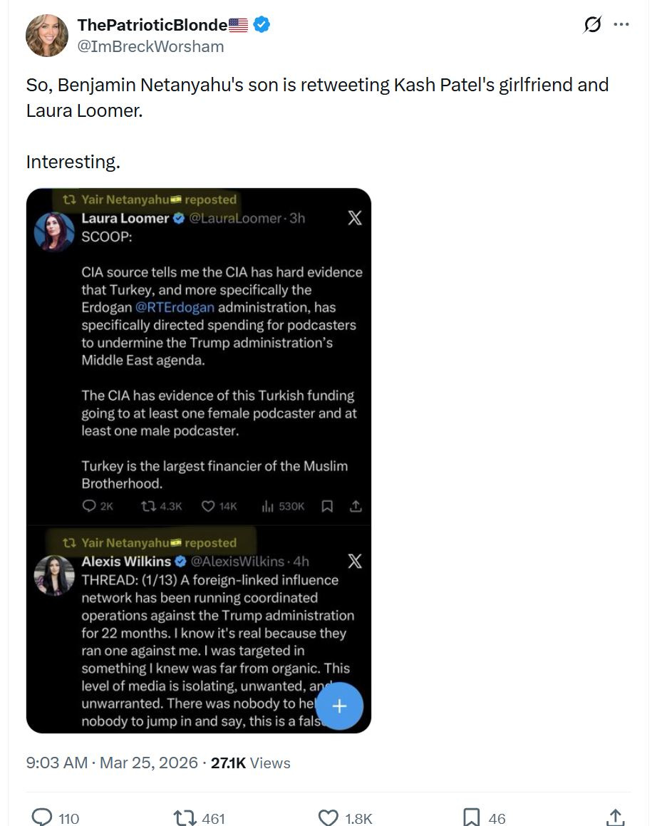 The Flynn network responded predictably, like they always have to me: personal attacks and “it’s all lies.” And, of course, they’re blaming Israel. Because Netanyahu’s son apparently reposted a couple related posts, Israel must be behind this sudden factual exposure, right? [sarcasm intended]